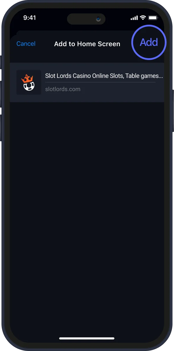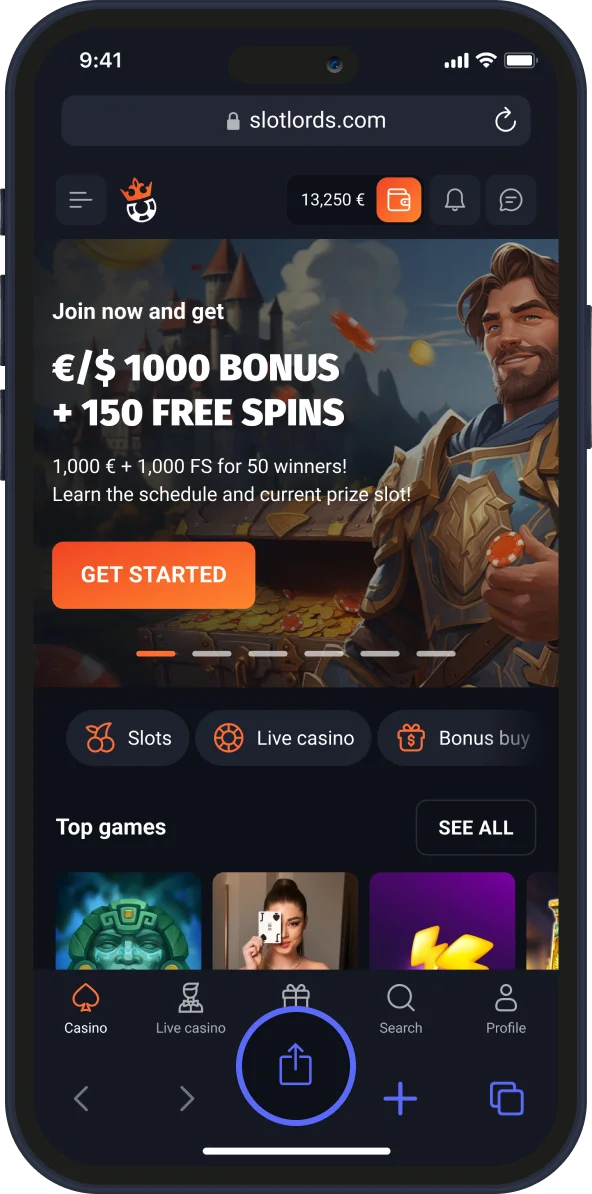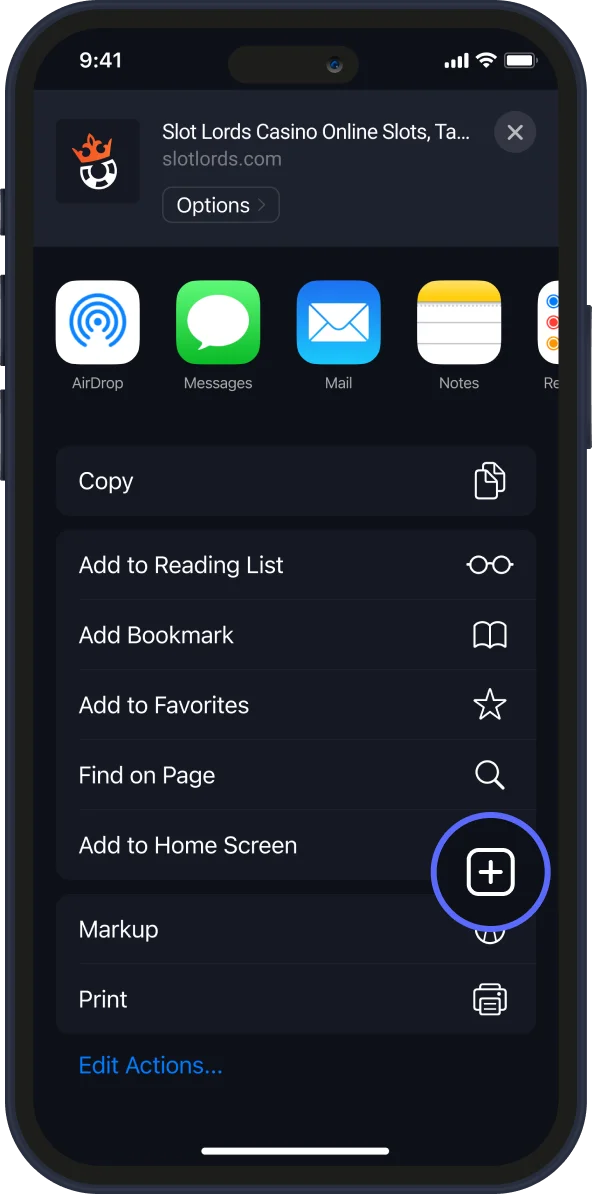 Open www.SlotLounge.com with Safari, tap “Share” on the bottom navigation panel.